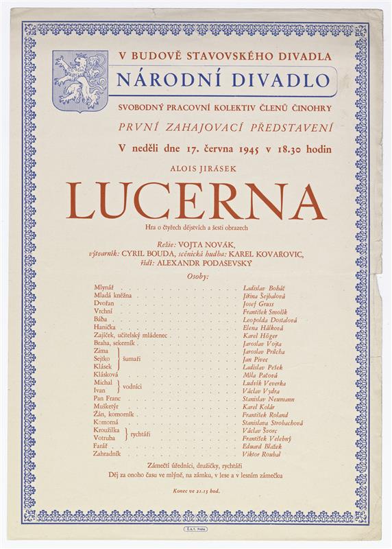 Poslechněte si příspěvek a poté si níže prohlédněte plakáty k inscenacím Lucerny z archivu Národního divadla.